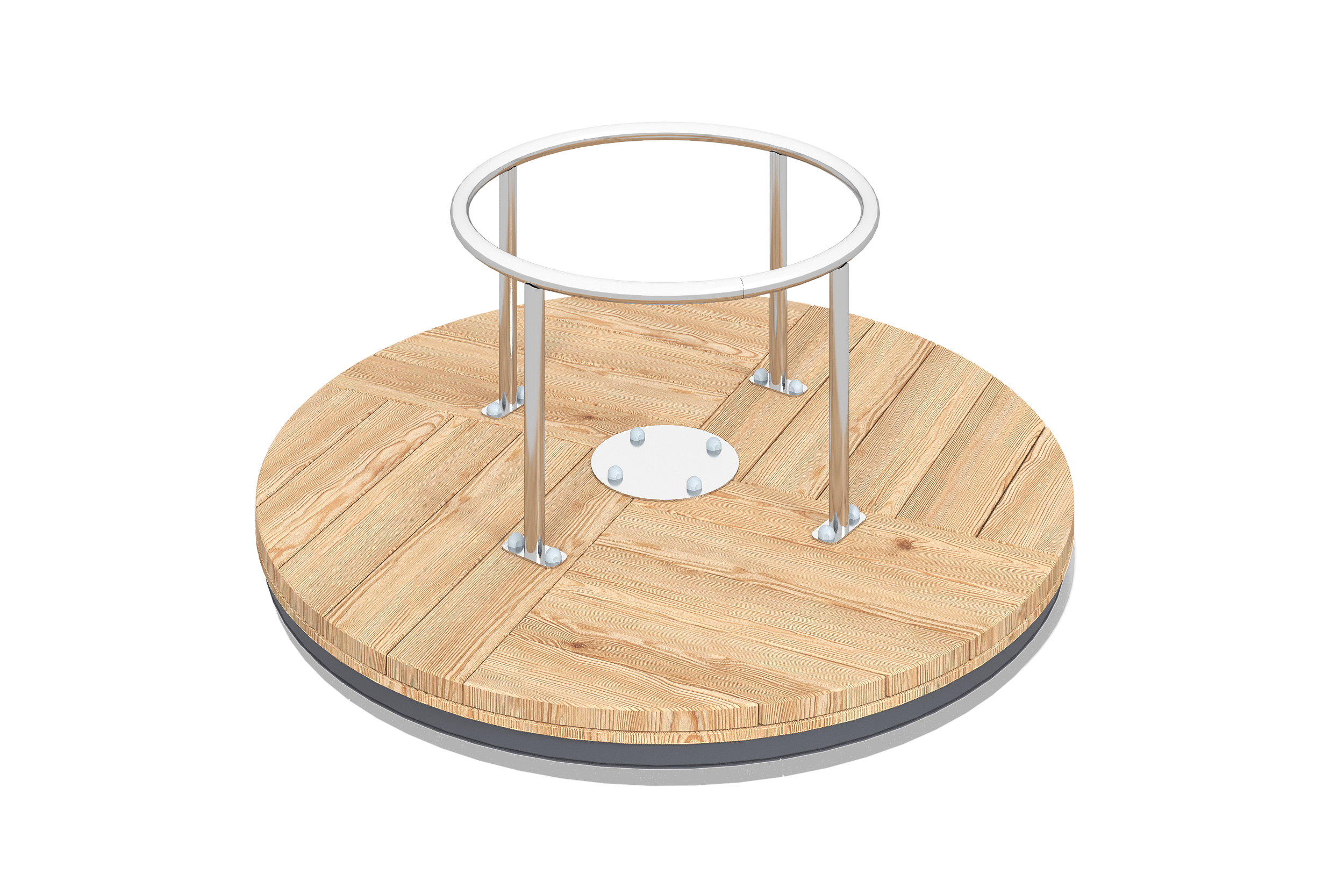 Спинки сидений имеют продолговатые прорези для удобного хвата, а для дополнительного комфорта предусмотрена опорная ручка со скругленными углами. Металлические элементы покрыты порошковой краской, а спинки сидений — акриловой краской с антиграффити покрытием, что облегчает уход за изделием. Демпфирование из армированной резины предотвращает резкие остановки, обеспечивая безопасность детей.