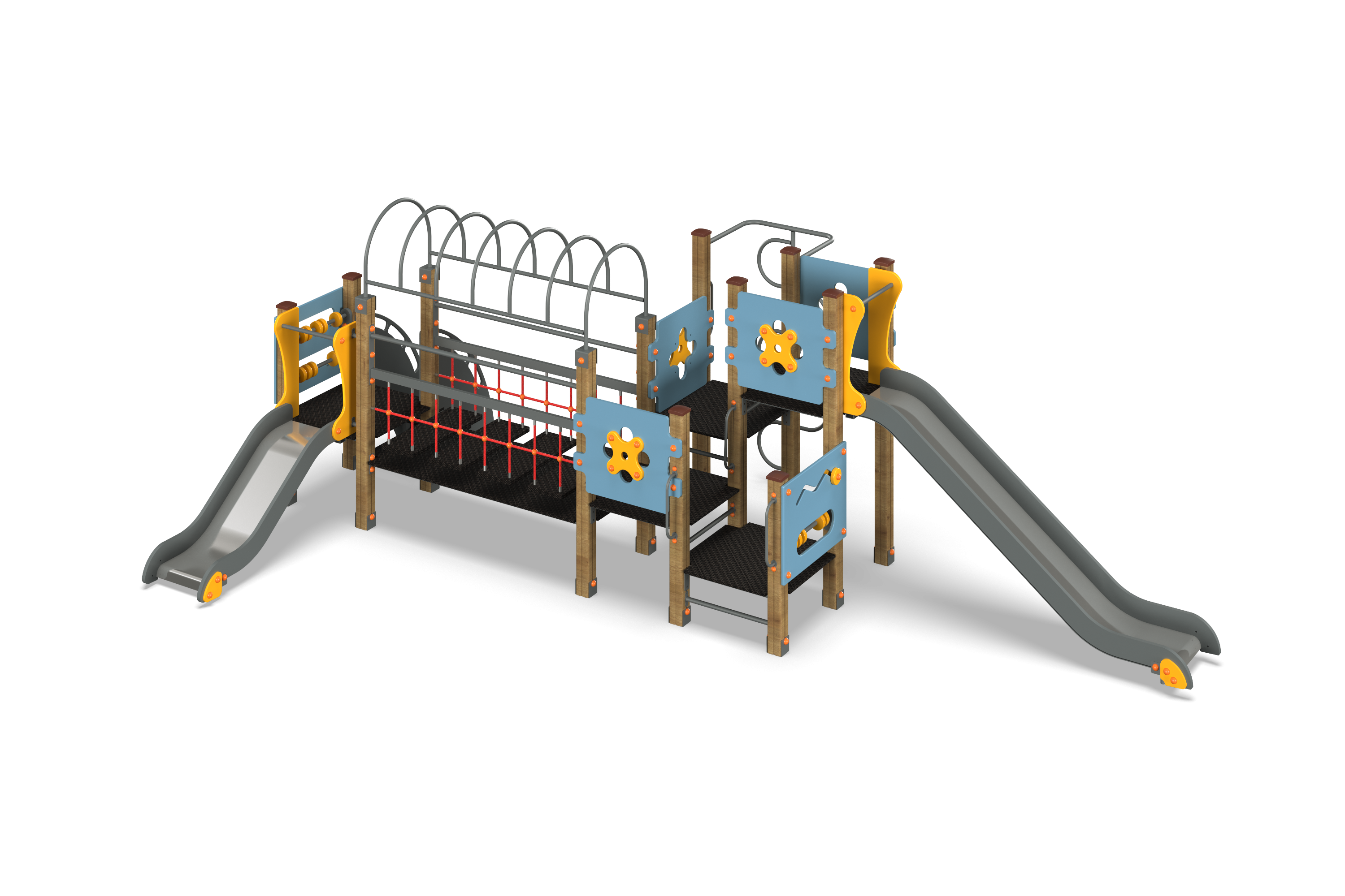 Игровое оборудование компании «Лебер» создано для всестороннего детского развития. С помощью наших элементов дети учатся взаимодействовать, стимулируют когнитивные способности и улучшаю физическую форму через активные игры.