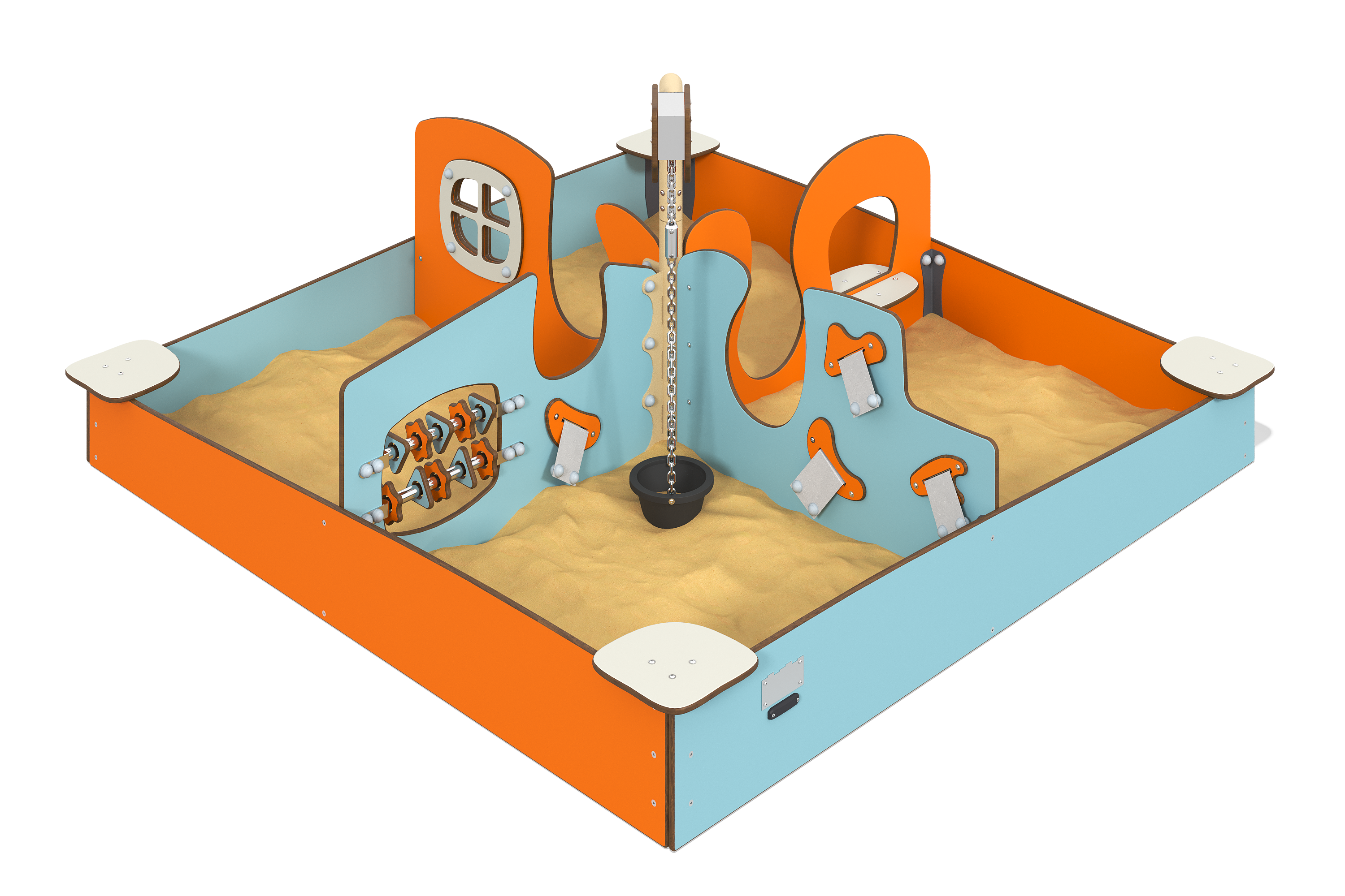 Игровой оборудование с открытой площадкой, горкой, лестницей, вертикальной мачтой со штурвалом и счетами — это увлекательное пространство для детских игр. Прочные материалы, такие как влагостойкая фанера, дерево и металл, обеспечивают надежность и долговечность. Декоративные элементы и антиграффити покрытие добавляют эстетическую привлекательность. Этот комплекс станет отличным дополнением любой детской площадки, предлагая детям активное и безопасное развлечение.