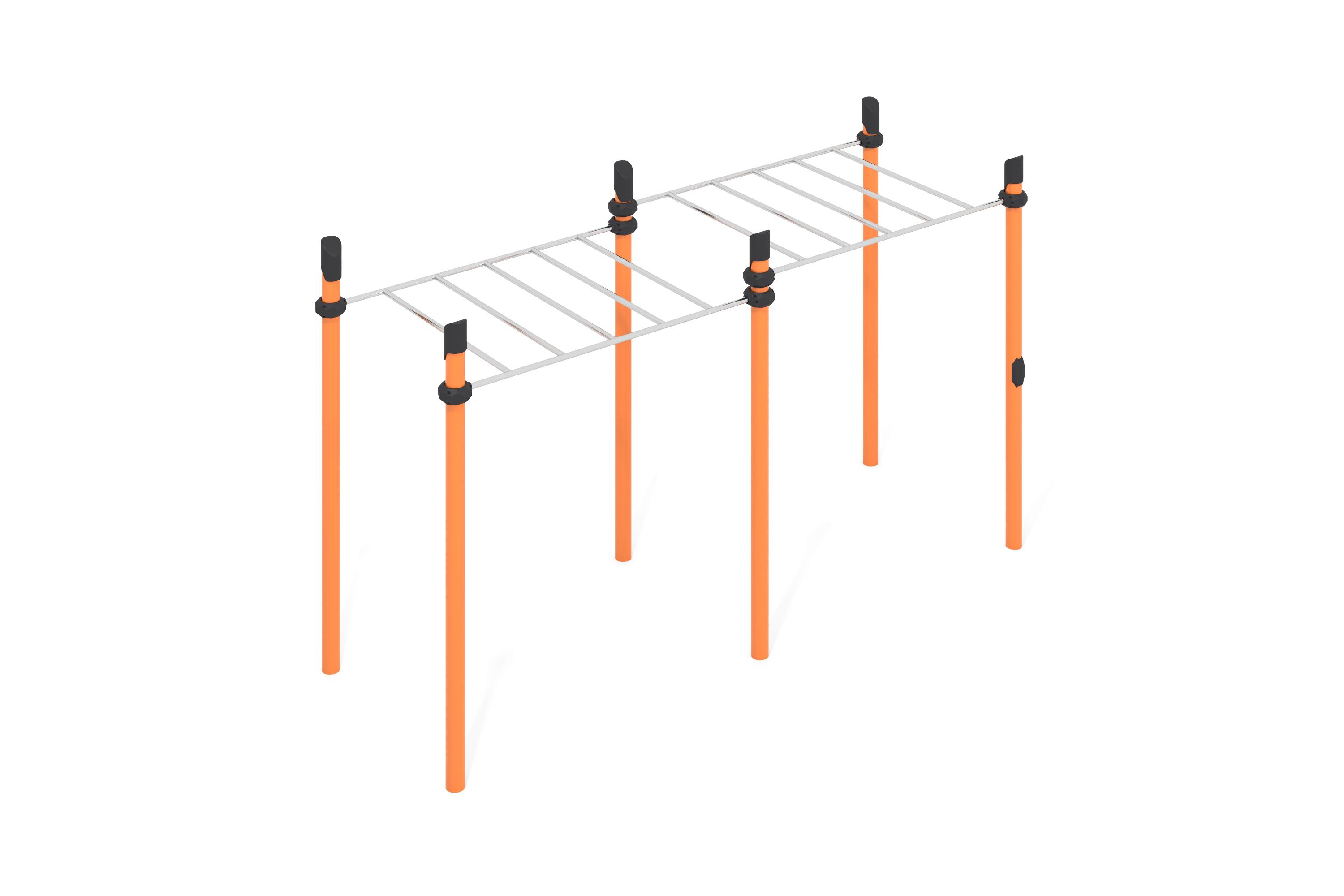Компоненты комплекса легко монтируются и имеют продуманный дизайн: все детали окрашены защищённой порошковой краской, а крепежи защищены от коррозии. Цветовая палитра и общий вид конструкции могут быть адаптированы под различные требования, что делает его универсальным решением для детских площадок, садиков, школ и развлекательных центров.