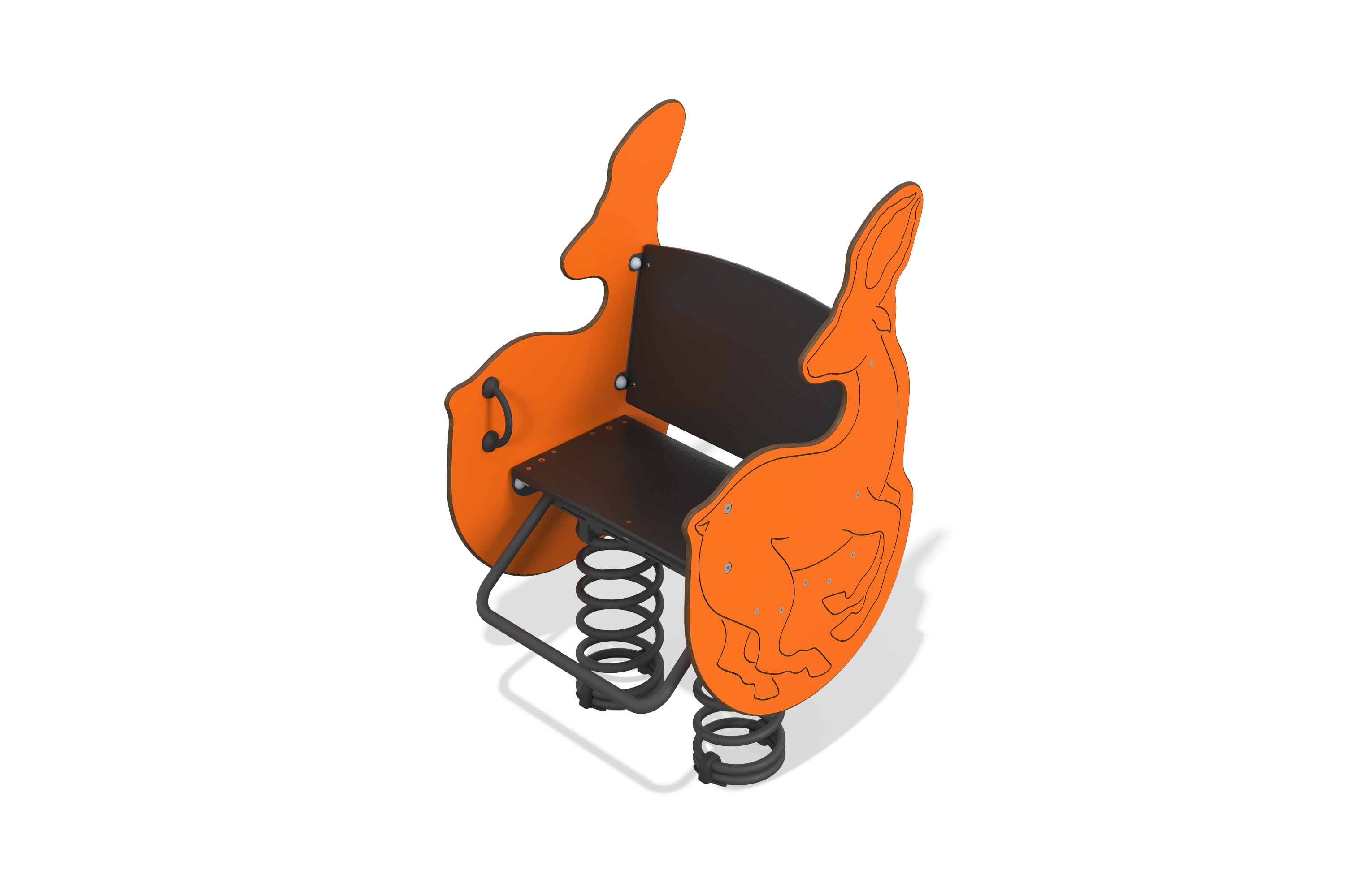 Пол элемента имеет антискользящее покрытие для повышения безопасности детей во время игр. Использование пружин обеспечивает плавное движение и легкость раскачивания. Все деревянные детали окрашены с использованием акриловой краски и имеют защитное антиграффити покрытие, что делает их легко очищаемыми.