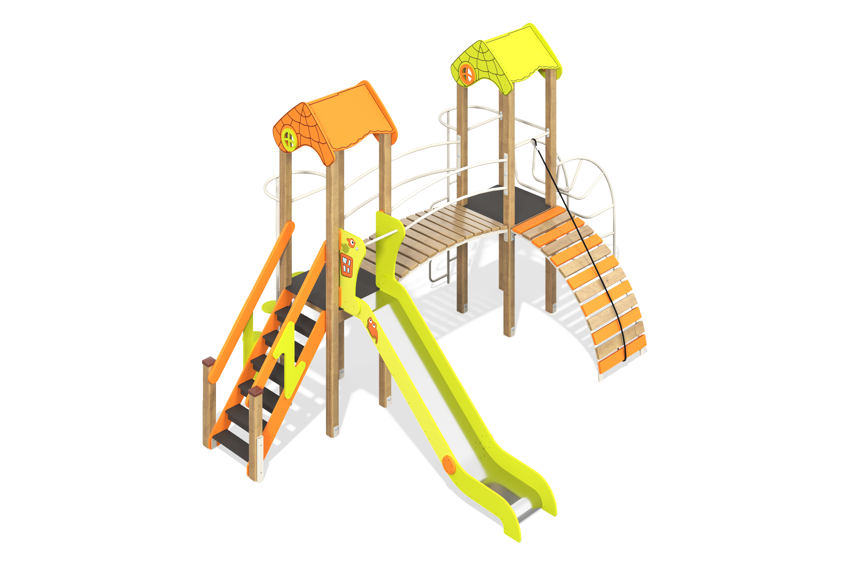 Игровое оборудование компании «Лебер» создано для всестороннего детского развития. С помощью наших элементов дети учатся взаимодействовать, стимулируют когнитивные способности и улучшаю физическую форму через активные игры.