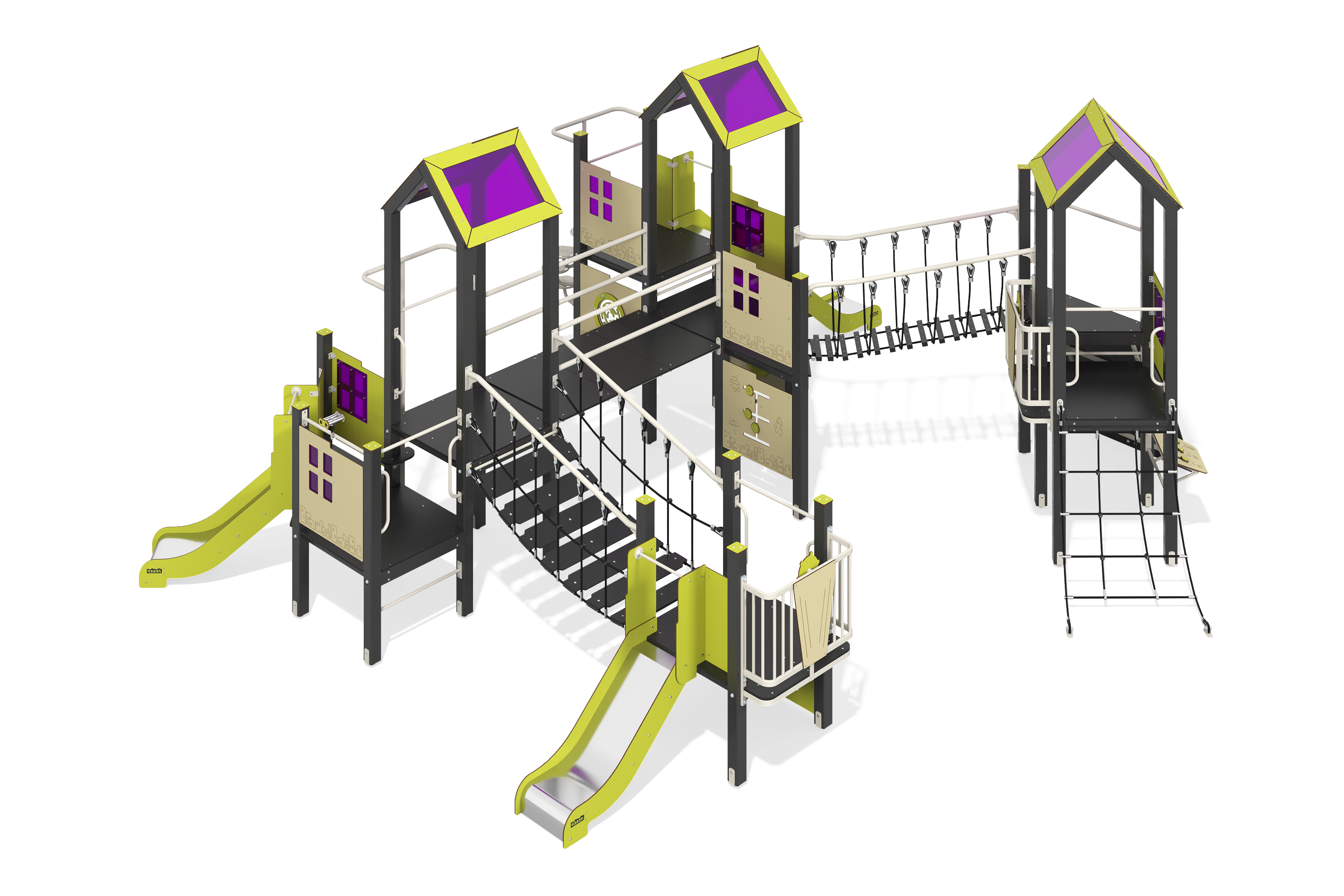 Игровое оборудование компании «Лебер» создано для всестороннего детского развития. С помощью наших элементов дети учатся взаимодействовать, стимулируют когнитивные способности и улучшаю физическую форму через активные игры.