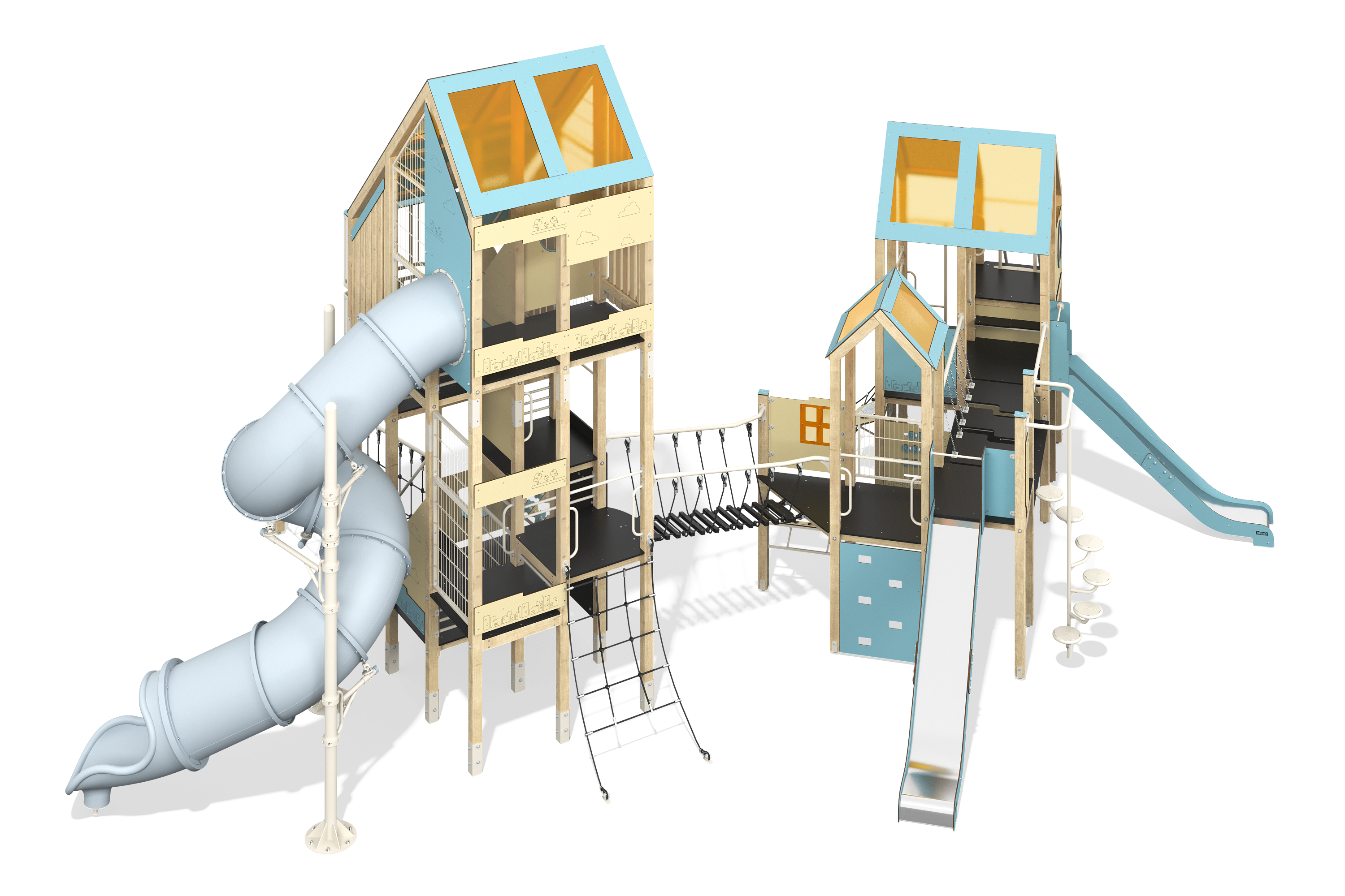 Игровое оборудование компании «Лебер» создано для всестороннего детского развития. С помощью наших элементов дети учатся взаимодействовать, стимулируют когнитивные способности и улучшаю физическую форму через активные игры.