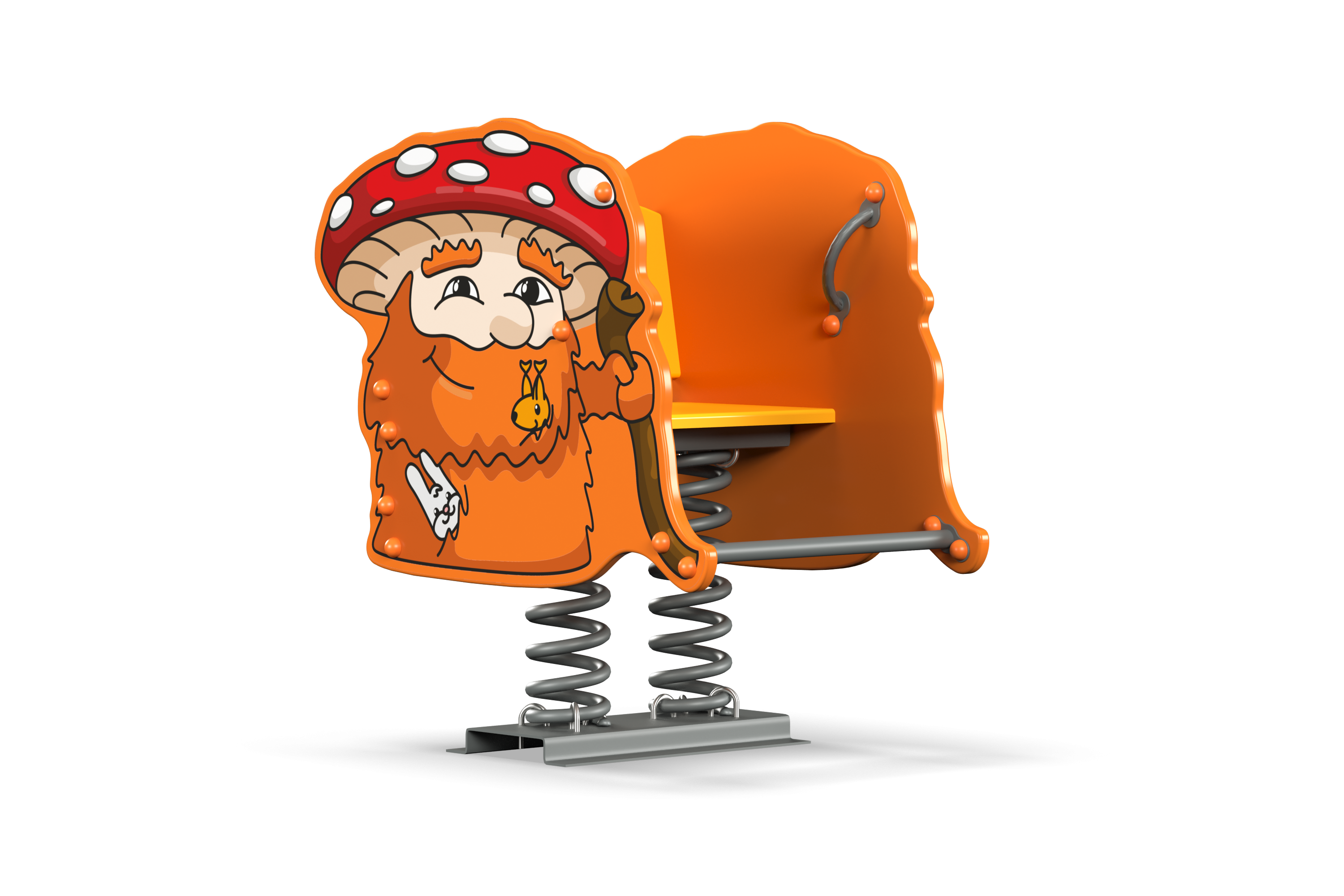 Карусель предназначена для детских игровых площадок и представляет собой круглую вращающуюся платформу с неподвижным рулем. Она имеет сиденья с поручнями для обеспечения безопасности детей во время игры. В верхней части карусели расположен круглый элемент с оформлением, который придаёт изделию уникальный вид.