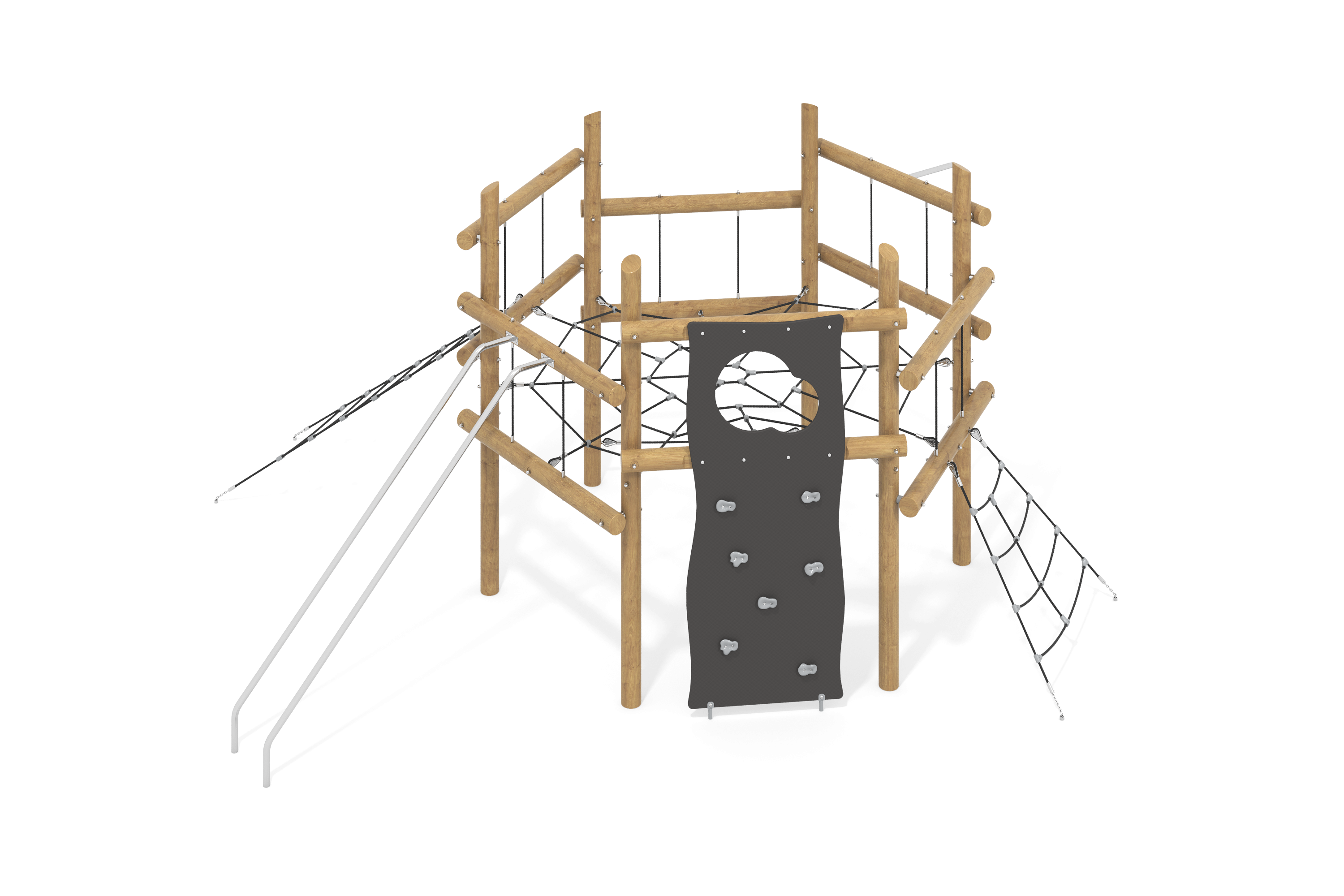 Комплекс легко интегрируется в любые игровые пространства и создает условия для активной игры, общения и развития. Он станет отличным дополнением к дворовым или общественным площадкам, предлагая детям возможность весело проводить время на свежем воздухе.