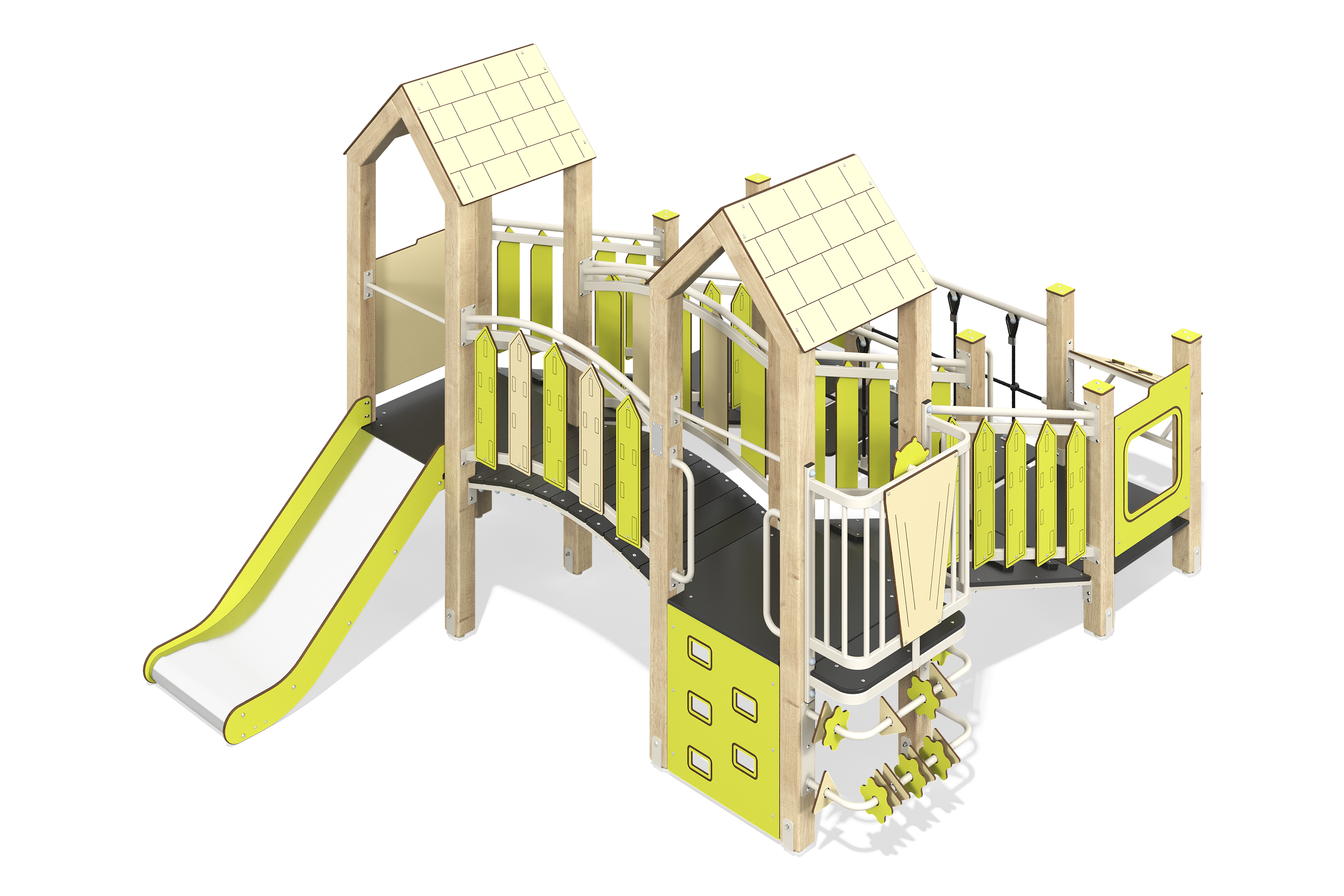 Игровое оборудование компании «Лебер» создано для всестороннего детского развития. С помощью наших элементов дети учатся взаимодействовать, стимулируют когнитивные способности и улучшаю физическую форму через активные игры.