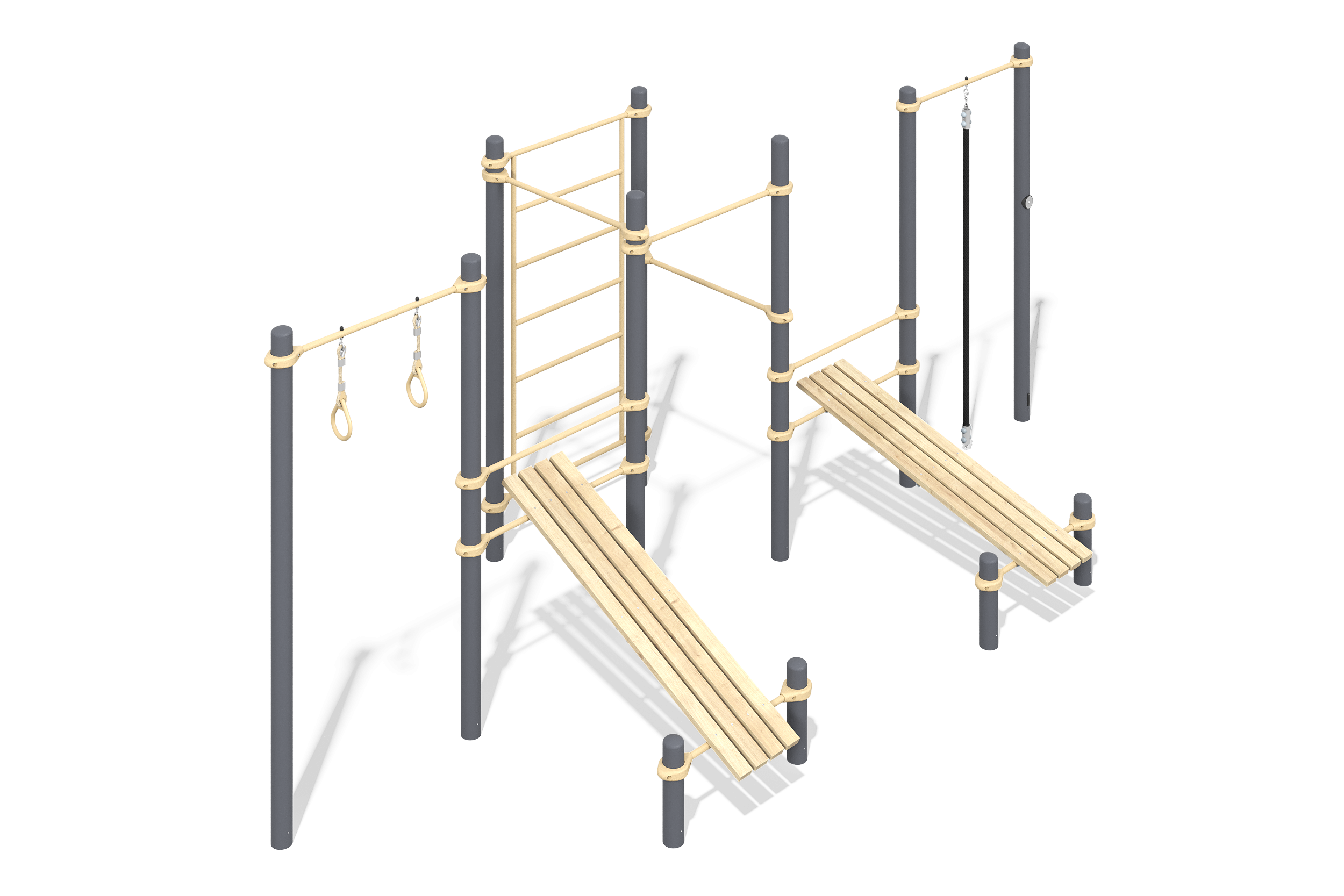 Современная спортивная секция для активного отдыха и тренировок, состоящая из прочных металлических элементов и пластика высокого качества. Комплекс включает разнообразные тренажеры, такие как лаз, рукоход и лестницы, предназначенные для развития силы, гибкости и координации. Использование коррозионно-стойких материалов и высокого уровня производственного качества обеспечивает долговечность и устойчивость конструкции. Создайте безопасную и функциональную зону для занятий спортом на открытом воздухе или в спортивных центрах.