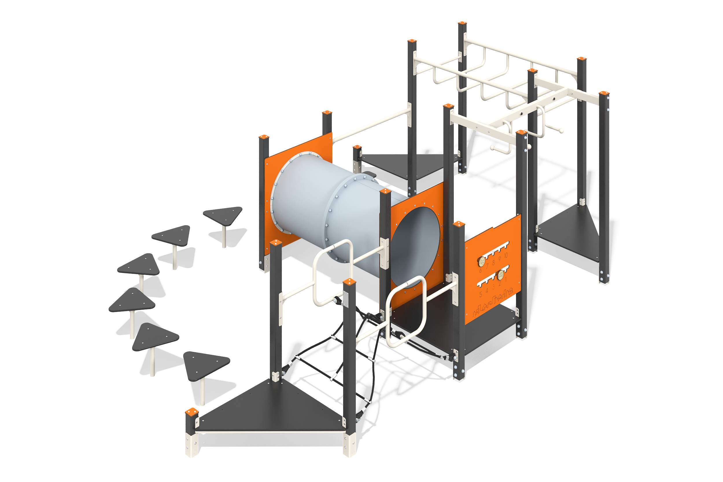 Спортивная станция предназначена для комплексного развития всех групп мышц и кардиотренировок. Он включает в себя множество элементов, таких как металлические стойки, турники, шведская лестница и брусья, что позволяет разнообразить тренировки. Конструкция собирается на месте установки и надежно фиксируется в грунте. Полимерное покрытие обеспечивает защиту материалов от внешних воздействий, а оцинкованный крепеж гарантирует долговечность. Этот комплекс подходит как для индивидуальных, так и для групповых тренировок.