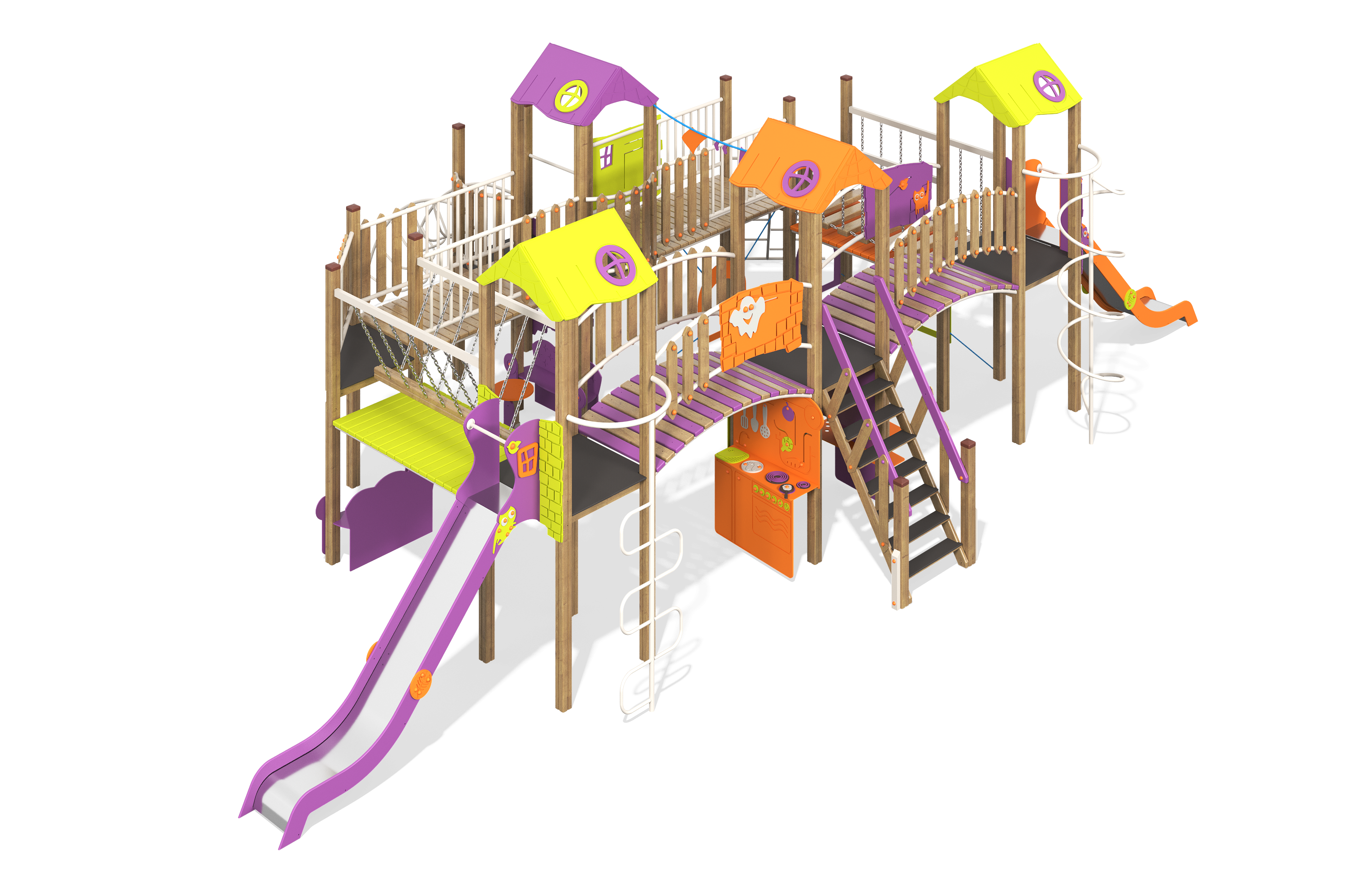 Игровое оборудование компании «Лебер» создано для всестороннего детского развития. С помощью наших элементов дети учатся взаимодействовать, стимулируют когнитивные способности и улучшаю физическую форму через активные игры.