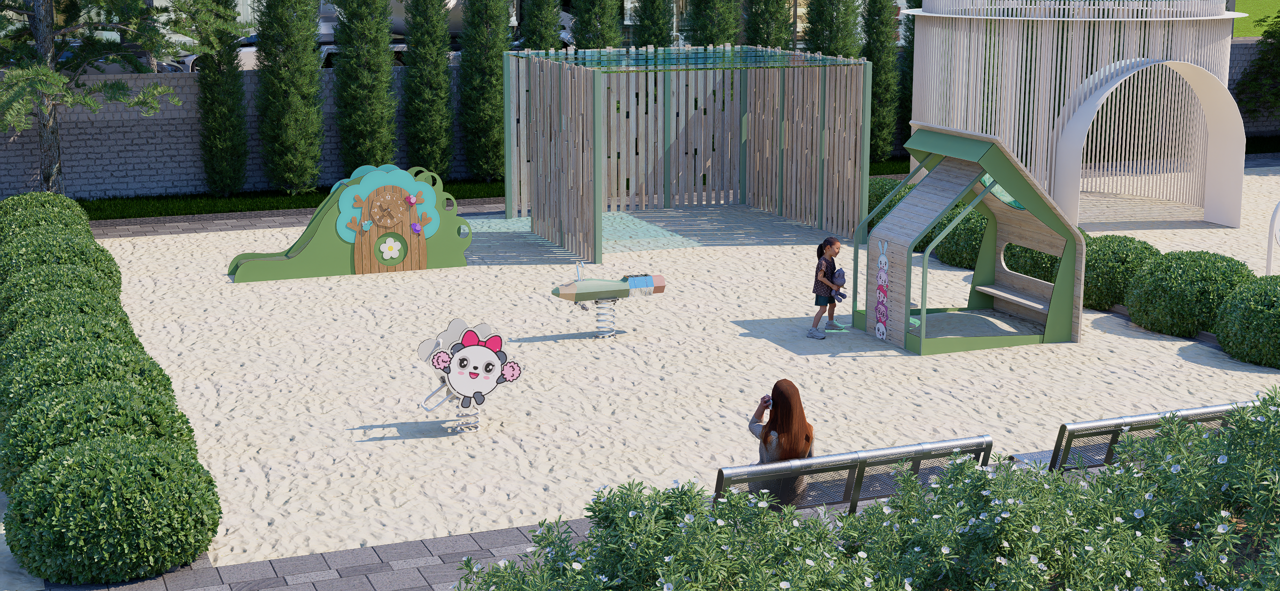 При проектировании детских площадок по мотивам мультфильмов специалисты компании «Лебер» опираются на нейродинамический подход, учитывая влияние каждого элемента на развитие мозга и нервной системы ребёнка. Качалки, балансиры и карусели, способствуют сенсорно-моторному развитию, а модули, требующие планирования движений, улучшают внимание, память и навыки принятия решений.